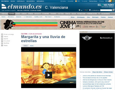 La otra noticia publicada la encontrarán en El Mundo online, donde verán una reseña escritra muy breve, pero muy chula redactada por Bel Carrasco, y una secuencia de 30 segundos del cortometraje.